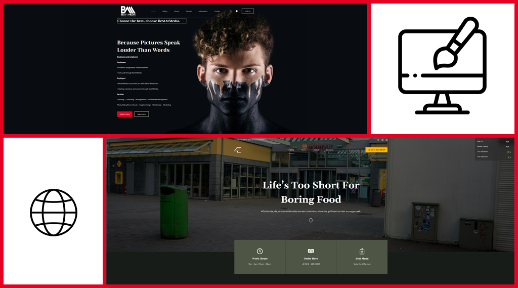 • Grafische vormgeving, zodat wij geen stock footage, maar persoonlijke professionele banners, flyers, visitekaartjes en overige ontwerpen op je website zullen plaatsen.